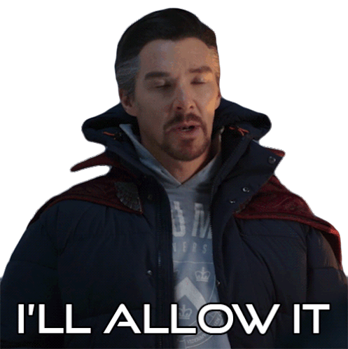 Doctor Strange, played by Benedict Cumberbatch, gives his permission with the phrase "I'll Allow It."