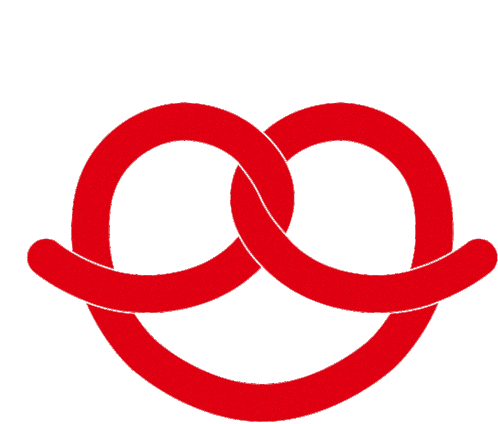 An animated sticker featuring a red pretzel transforming into a heart, expressing love for Munich (Minga).