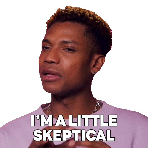 Xunami Muse from RuPaul's Drag Race expresses skepticism, gesturing with her hands and saying 'I'm a little skeptical'.