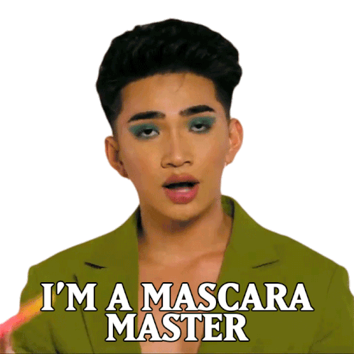 Bretman Rock confidently declares 'I'm a Mascara Master' while showcasing his makeup skills and stylish green eyeshadow.