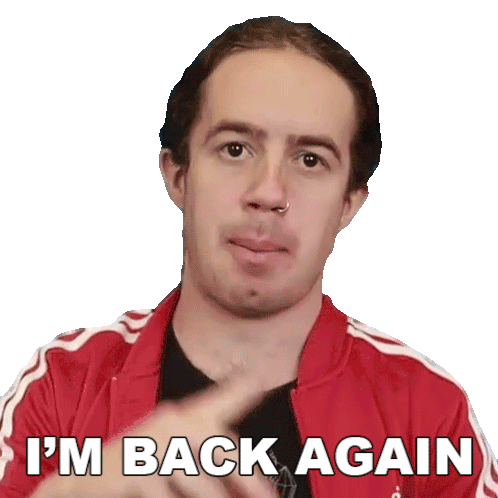 Bradley Hall points at the camera, declaring 'I'M BACK AGAIN' with a confident and engaging expression.