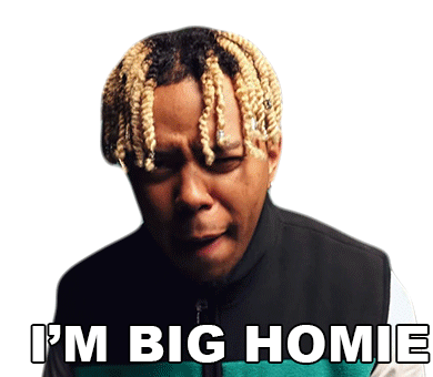 Ybn Cordae expresses 'I'm Big Homie' with a surprised look, featuring his distinctive braided hair.