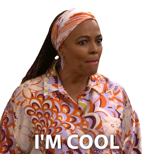 Regina Upshaw from The Upshaws, wearing a colorful shirt and headband, confidently declares 'I'M COOL'.