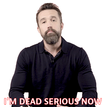 Rob McElhenney looks dead serious, stating 'I'm Dead Serious Now' with a stern expression.