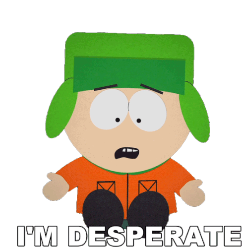 Kyle Broflovski from South Park expresses desperation with wide eyes and an open mouth, accompanied by the caption 'I'M DESPERATE'.