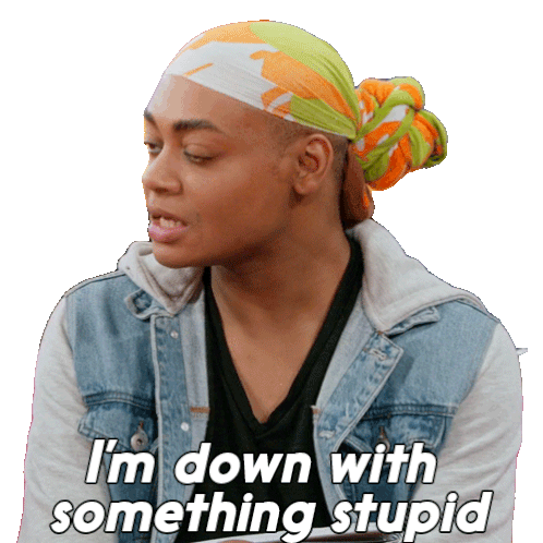 Heidi N Closet says 'I'm down with something stupid', expressing readiness for a silly or adventurous idea.