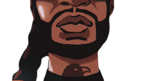Animated sticker of 2Chainz, a man with a beard and rings, taking a puff from a cigar. Features a bird tattoo on his neck.