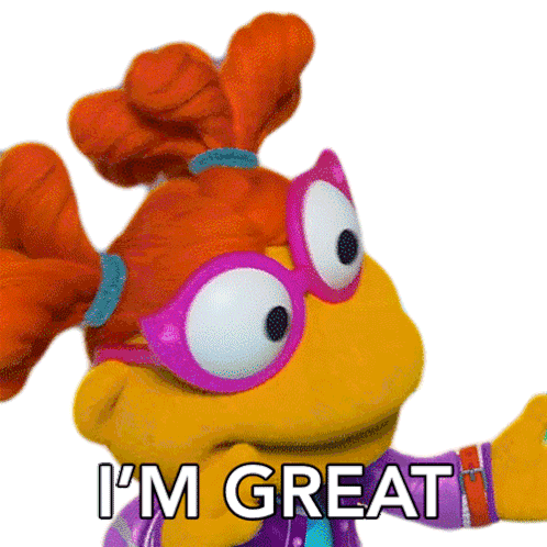 Baby Skeeter from Muppet Babies gives a confident thumbs up, declaring 'I'm Great' with a big smile.