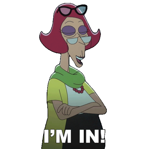 Agatha from Digman! animatedly declares 'I'M IN!' with a confident smile and crossed arms.