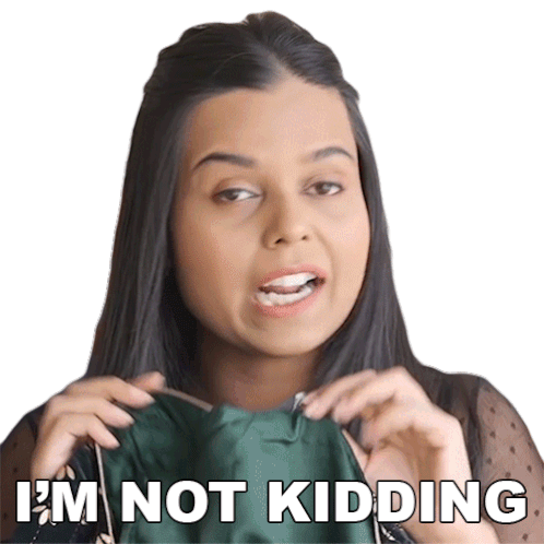 Aishwarya from Buzzfeed India emphatically states 'I'm Not Kidding' with hand gestures, conveying seriousness.