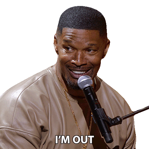 Jamie Foxx expresses a range of emotions, from 'I'm Out' to 'This Motherfucker Playin' With My Feelings', while holding a microphone.