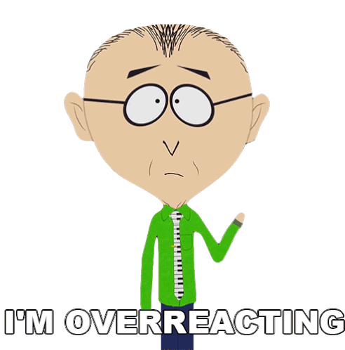 Mr. Mackey from South Park says 'I'm Overreacting' with a thoughtful expression, adjusting his tie.