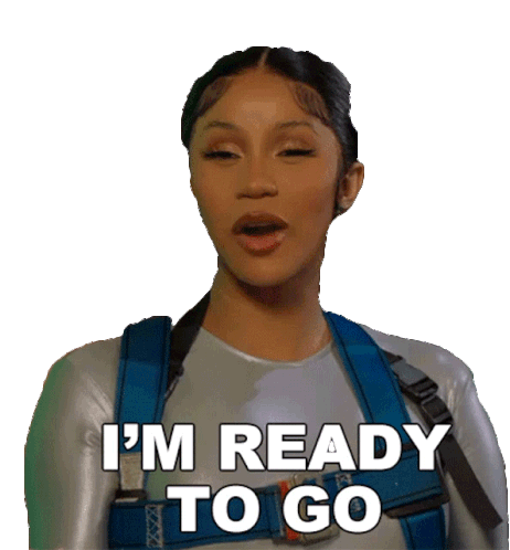 Cardi B declares 'I'm Ready To Go' in this animated sticker, perfect for expressing eagerness to depart or start.