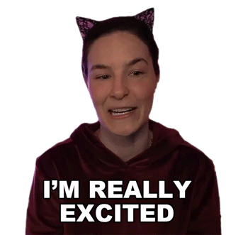 Cristine Raquel Rotenberg expresses genuine excitement, smiling broadly with cat ears, perfect for sharing your hyped feelings.