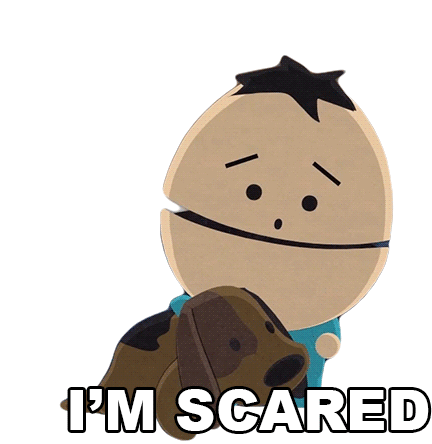 Ike Broflovski from South Park looks scared while holding his dog, with the caption 'I'M SCARED'.