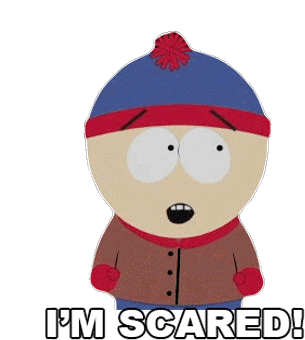 Stan Marsh from South Park expresses fear with wide eyes and an open mouth, exclaiming 'I'M SCARED!' in this animated sticker.