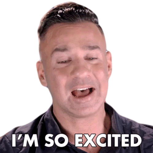 Mike Sorrentino, known as The Situation, expresses extreme excitement with the caption 'I'M SO EXCITED' from Jersey Shore.