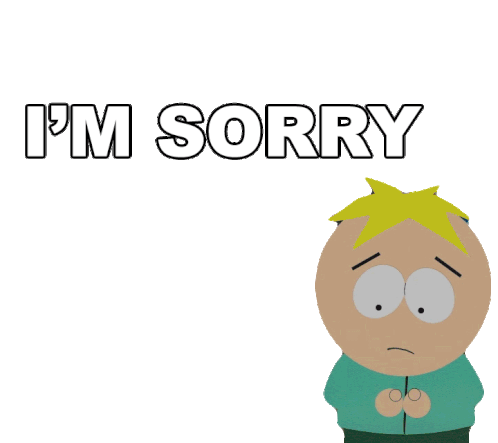 Butters Stotch from South Park looking apologetic with the text "I'M SORRY" above him, expressing regret.