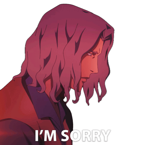 Hector from Castlevania expresses deep regret and apologizes with a somber expression, looking downcast.