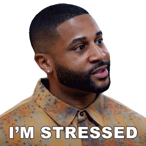 Zac (Devale Ellis) from BET's Sistas expresses feeling stressed with the caption 'I'M STRESSED'.