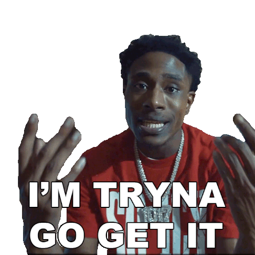 Baby Racks, wearing a red shirt with 'I'M TRYNA GO GET IT' text, expresses determination and ambition.