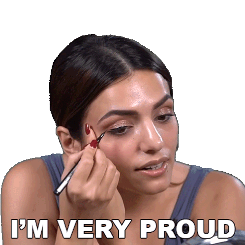Sukriti Kakar applies eyeliner with focus, expressing "I'M VERY PROUD". A moment of self-satisfaction and beauty.