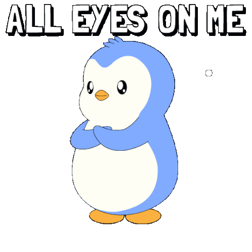 a blue and white penguin with many eyes and the words all eyes on me behind it