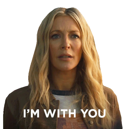 Lidia Bennett, played by Jennifer Finnigan, shows support by saying 'I'M WITH YOU' in this animated sticker from Moonshine.