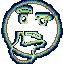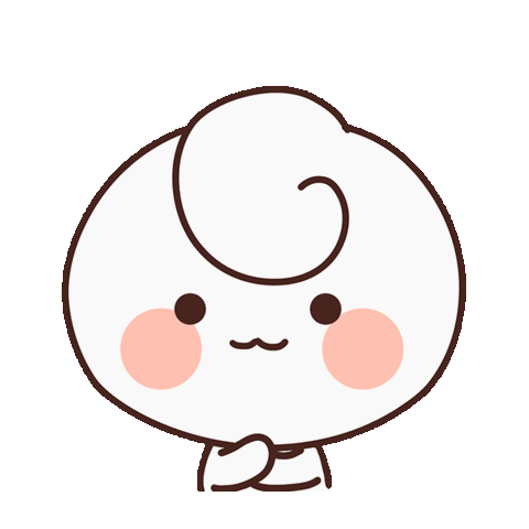 A cute, round cartoon character with pink cheeks and a swirl on its head is deep in thought, pondering or wondering.