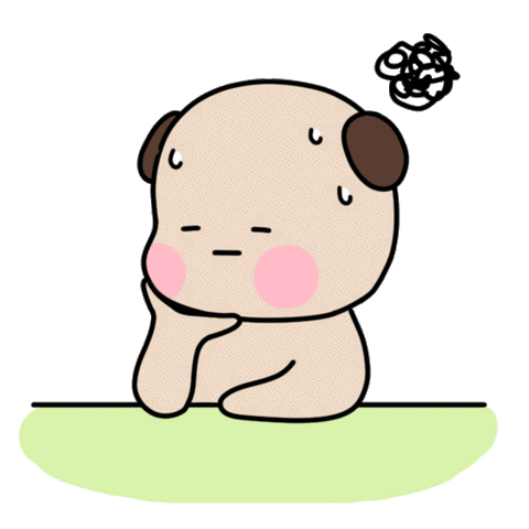 A cute cartoon character with pink cheeks ponders deeply, expressing confusion or thought with 'Umm' and sweat drops.