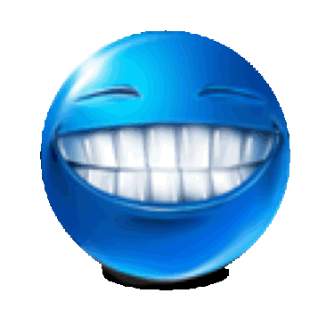 A blue emoji-like face transitions from a confused, drooling expression to a wide-eyed, relieved smile.
