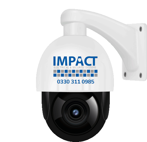 An animated sticker of an Impact Security CCTV camera, featuring the company logo and contact number. Ideal for security-related content.