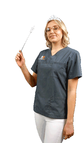 Eine lächelnde Zahnfee vom Implantatzentrumherne zaubert einen Sternenstab hervor, perfekt für zahnärztliche Grüße.