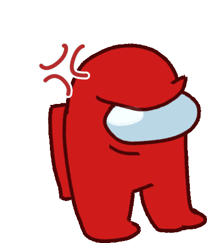 An angry red Among Us imposter character with frustration lines above its head, conveying annoyance.