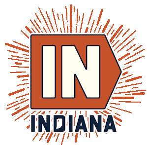 Show your Indiana pride with this vibrant sticker featuring the 'IN' logo and 'INDIANA' text, surrounded by a sunburst design.