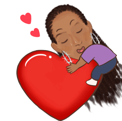 Cynthia Lignon Lou shows affection, hugging a red heart and blowing a kiss with small hearts floating around.