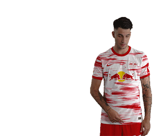 Dominik Szoboszlai, wearing his RB Leipzig jersey, points to his heart, conveying deep emotion or affection.
