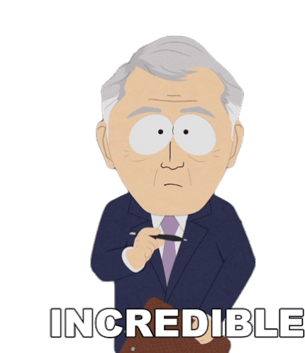 The CDC Chairman from South Park reacts with an expression of awe and disbelief, exclaiming "INCREDIBLE."