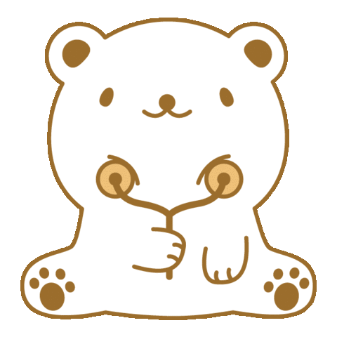 A cute cartoon bear sticker with a neutral, indifferent, and uninterested expression, holding small objects.
