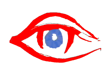 A striking animated sticker featuring a stylized red eye with a blue pupil, associated with Information Society, that blinks rhythmically.