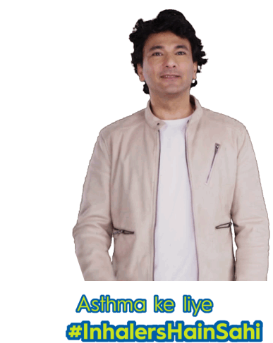 Chef Vikas Khanna promotes the #InhalersHainSahi campaign for asthma awareness, giving a thumbs up and pointing.