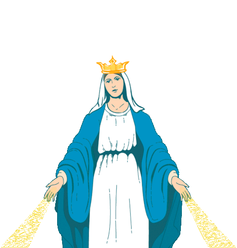 Animated sticker celebrating the Immaculate Conception and Happy Day of the Virgin Mary, featuring her image with a crown and radiating light.