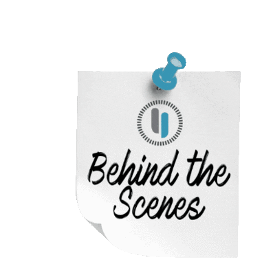 A white sticky note with a blue pushpin, featuring the Innervoice Media logo and the text "Behind the Scenes" in a script font.