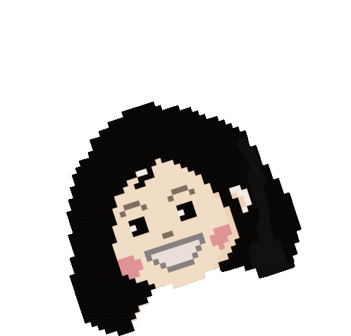 Inninnder Zaizaiplace pixel art sticker featuring a smiling woman with black hair, happily tilting her head.