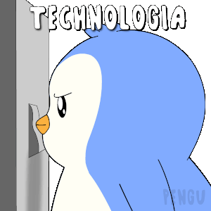 Pengu the penguin curiously examines a switch, symbolizing the future of technology and innovation. A cute animated sticker.