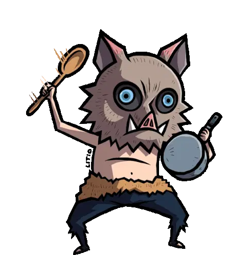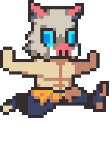 Inosuke Hashibira, the wild Demon Slayer character, depicted in vibrant pixel art, running with his iconic boar mask.