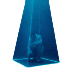 Andrew Bazzi kneels in a blue pyramid of light, reflecting on themes of loneliness and introspection from 'Inside Light'.