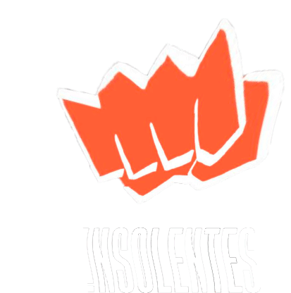 An animated sticker featuring a bold orange fist logo with a white outline and the word 'Insolentes' in stylized white text below it.