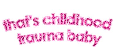 Animated sticker featuring the phrase 'that's childhood trauma baby' written in vibrant pink letters with subtle sparkles.