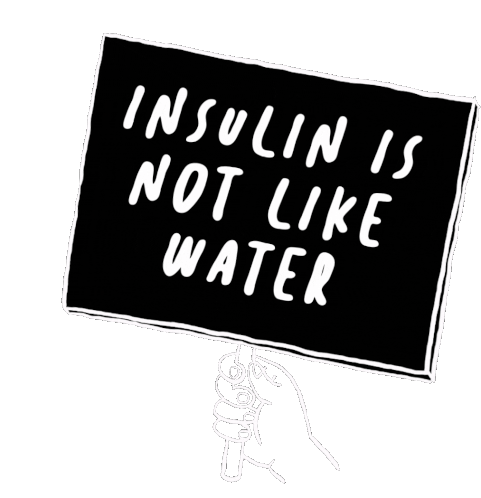 A protest sign held by a hand, stating 'INSULIN IS NOT LIKE WATER', highlighting healthcare costs, a key issue for Biden and Trump.